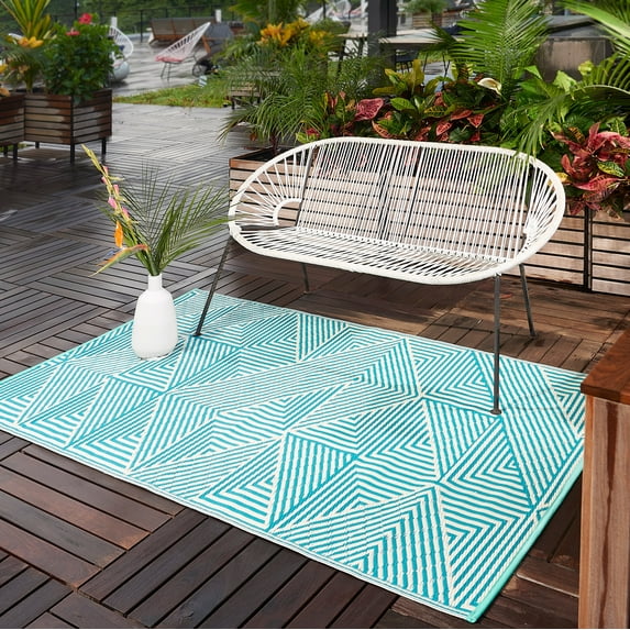 Hero image 0 of Fab Habitat Outdoor Rug - Waterproof, Fade Resistant, Crease-Free, Reversible - Premium Recycled Plastic - Modern Geometric - Patio, Deck, Porch, Balcony, Laundry Room - Tokyo - Teal - 4 x 6 ft, 0 of 9