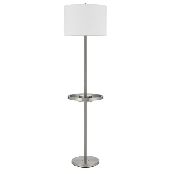 $45451current price $454.51$454.51/count+$12.49 shippingHomeRoots 62" Nickel Tray Table Floor Lamp With White Drum Shade