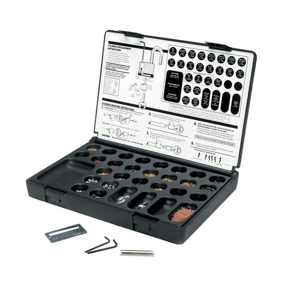 OVERVIEW Contains extensive assortment of the most frequently used pin tumbler service components for Pro SeriesĀ® and commercial security rekeyable padlocksCase has deep storage compartments and sealing cover keeps to parts in their place Convenient reference chart included Rekeying part refills may be ordered separately