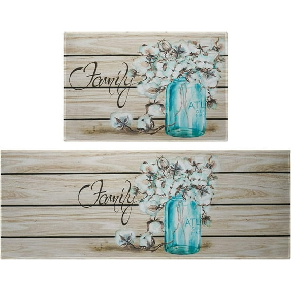 - Distinctive Design:Use this distressed vintage cotton boll kitchen rugs for home decor.Add a farmhouse atmosphere in the kitchen and protect your floors too. Boho large floral pattern design, Environmental printing and dyeing process to make it non-fading and non-shrink.These kitchen floor rugs and mats will meet any home and kitchen decor.