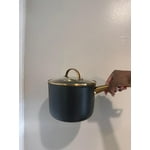 - Black exterior with elegant gold handle gives this cookware a modern aesthetic