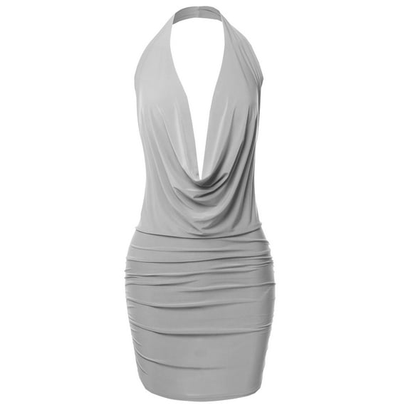 FashionOutfit Women's Sexy Halter Neck Ruched Bodycon Backless Party Cocktail Mini Dress