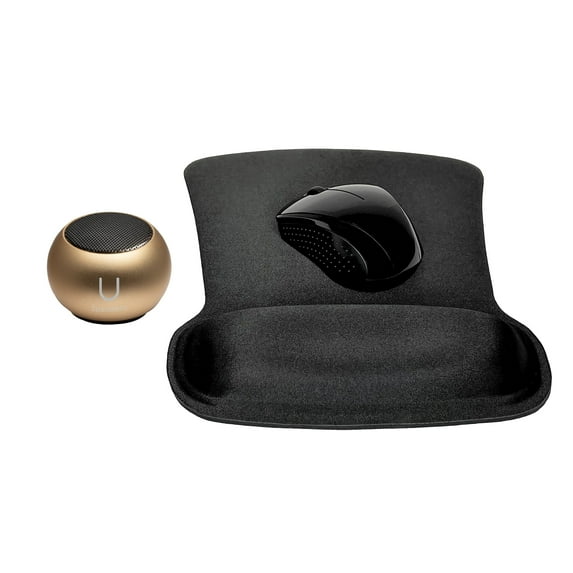 - Work from Anywhere - This bundle includes the U Speakers Mini Speaker in gold, the wireless mouse X3000 G2 in black, & the coordinating gel mouse pad in black. This is the ideal active lifestyle, home, or office bundle for your dynamic, busy life.