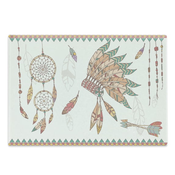 Hero image 0 of Feather Cutting Board, Prehistoric Chief Headdress Arrows Dreamcatchers, Decorative Tempered Glass Cutting and Serving Board, Large Size, Dark Coral Sand Brown, by Ambesonne, 0 of 1