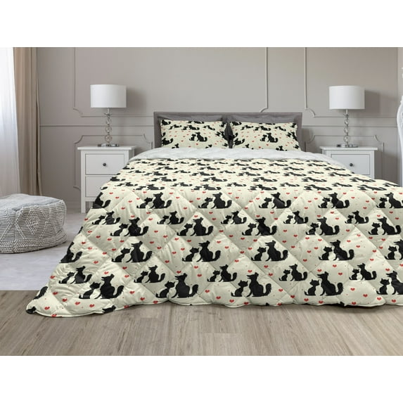 Feminine Comforter & Sham Bedding Set, Dog Cat Silhouettes Romantic Hearts Domestic Animals Pet Love, 3 pcs Duvet Set Microfiber Filling Quilt, 5 Sizes, Beige Black Red, by AmbesonneFeminine Comforter Sham Bedding Set Dog Cat Silhouettes Romantic Hearts Domestic Animals Pet Love 3 pcs Duvet Set Microfiber Filling Quilt 5 Sizes Be