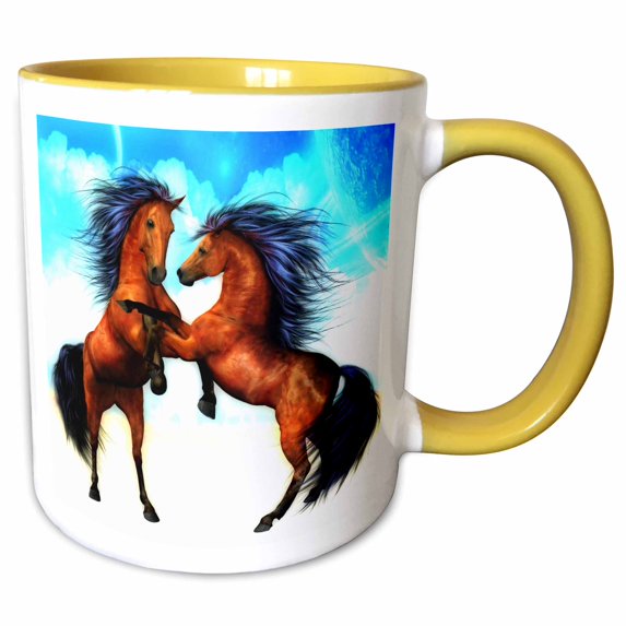 3drose, Fighting Stallions Two Very Beautiful Stallions Reared Up in Battle, 11oz Two-tone Yellow Mug