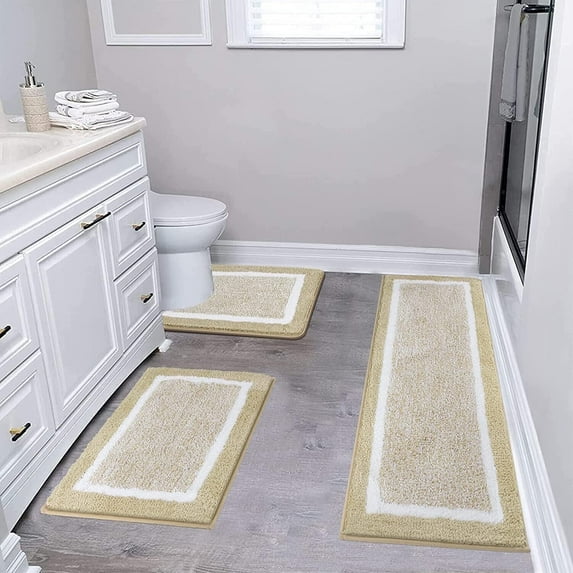 Findosom 3pcs Bathroom Rugs Set with U-Shaped Mat, Non Slip, Quick Drying, Ultra Soft and Water Absorbent Bath Rug Mat Carpet Machine Washable 18"x26"+18"x48"+U Shape 20"x24" Beige