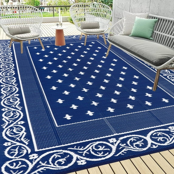 25 out of 5 Stars. 2 reviewsShipping, arrives in 3+ daysBliss Rugs Waterproof Reversible Plastic Straw Floral Outdoor Rug for Patio, Camping, RV, Deck, Porch, Camp | Navy, 5' x 6'11'' $37.70