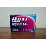 $1996current price $19.9683.2 ¢/countAllegra Adult 24-Hour Allergy Relief Gelcaps, Non-Drowsy Allergy Medicine, 180 mg Pill, 24 Count