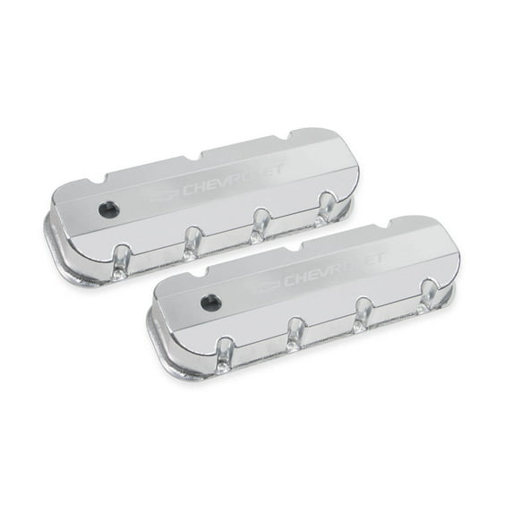 Holley is pleased to release its latest fully licensed product--GM Track Series Fabricated Aluminum Valve Covers. The GM Track Series family of valve covers gives you an excellent way to add a high-end fabricated look combined with a lightweight and tough valve cover for your favorite Chevy engine. These valve covers are constructed of 6061 T5 sheet aluminum, feature a laser etched Chevrolet and Bow Tie logo, and precision TIG welded for a proper fit. They are available in silver anodized or black coated finishes along with various heights to clear most popular rocker arm combinations. All of our valve covers include mounting hardware for quick and simple installation.;
