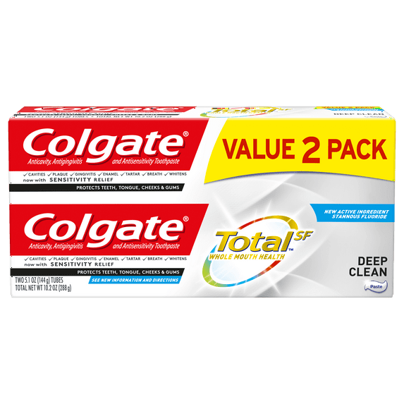 27154.7 out of 5 Stars. 2715 reviewsSave withPickup todayDelivery todayShipping, arrives todayColgate Total SF Toothpaste, Clean Mint, 4.8 ounce - 4 pack $19.99 Was $27.99