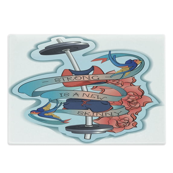 Hero image 0 of Fitness Cutting Board, Strong Is a New Skinny Composition Birds Flowers Barbell, Decorative Tempered Glass Cutting and Serving Board, Large Size, Dark Coral Blue Grey, by Ambesonne, 0 of 1