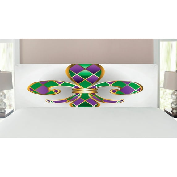 Hero image 0 of Fleur De Lis Headboard, Golden Yellow Colored Lily Diamond Shapes Royalty Theme, Upholstered Decorative Metal Bed Headboard with Memory Foam, King Size, Purple Green, by Ambesonne, 0 of 4