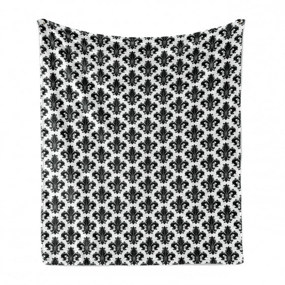 Hero image 0 of Fleur De Lis Soft Flannel Fleece Blanket, Monochrome Royal Lily Pattern Victorian Inspiration Ornamental Vintage Design, Cozy Plush for Indoor and Outdoor Use, 60" x 80", Black White, by Ambesonne, 0 of 6
