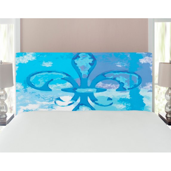 Fleur de Lis Headboard, Illustration of Lily Flower Like Frozen Heredic Nobility Emblem Queenly Style Print, Upholstered Decorative Metal Bed Headboard with Memory Foam, Full Size, Blue, by AmbesonneFleur de Lis Headboard Illustration Lily Flower Like Frozen Heredic Nobility Emblem Queenly Style Print Upholstered Decorative Metal Bed Headboard MeFleur de Lis Headboard Illustration Lily Flower Like Frozen Heredic Nobility Emblem Queenly Style Print Upholstered Decorative Metal Bed Headboard Me