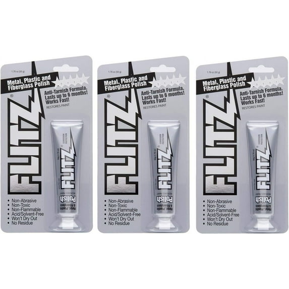 Flitz Polish - Paste - 1.76oz Tube - 3-PackFlitz Polish Paste 1 76oz Tube 3 PackFlitz Multi Purpose Polish Cleaner Paste Metal Plastic Fiberglass Aluminum Jewelry Sterling Silver Great Headlight Restoration Rust Remover Made USAFlitz Metal Polish Cleaner Paste Also Works Plastic Fiberglass Aluminum Jewelry Sterling Silver Headlight Restoration Rust Remover Made USA 1 76 OZ 8Flitz Multi Purpose Polish Cleaner Paste Metal Plastic Fiberglass Aluminum Jewelry Sterling Silver Great Headlight Restoration Rust Remover Made USA