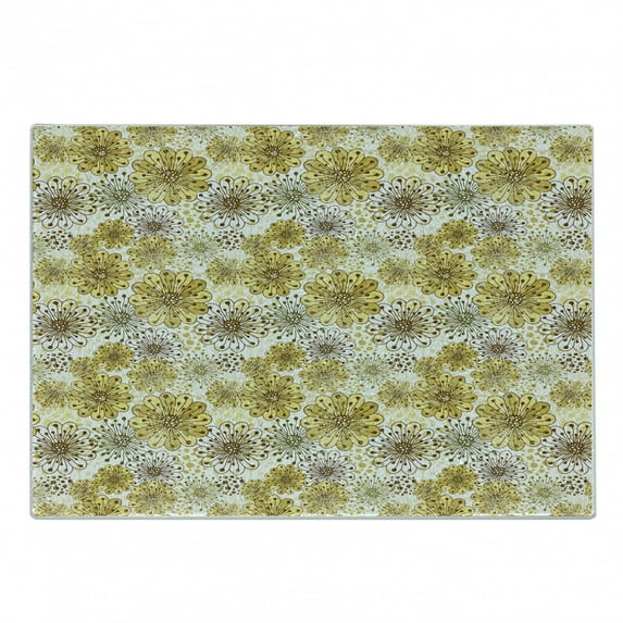 Hero image 0 of Floral Cutting Board, Blossoms Petals Modern Dots Abstract Bedding Plants Gardening, Decorative Tempered Glass Cutting and Serving Board, Small Size, Khaki Brown White, by Ambesonne, 0 of 1