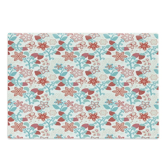 Hero image 0 of Floral Cutting Board, Flowers Ladybugs Butterflies Strawberries Playroom Pattern, Decorative Tempered Glass Cutting and Serving Board, Large Size, Dark Coral Aqua, by Ambesonne, 0 of 1