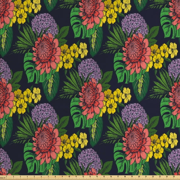 Hero image 0 of Floral Fabric by the Yard, Tropical Themed Pattern of Jungle Leaves and Colorful Flowers, Decorative Upholstery Fabric for Chairs & Home Accents, Multicolor by Ambesonne, 0 of 4