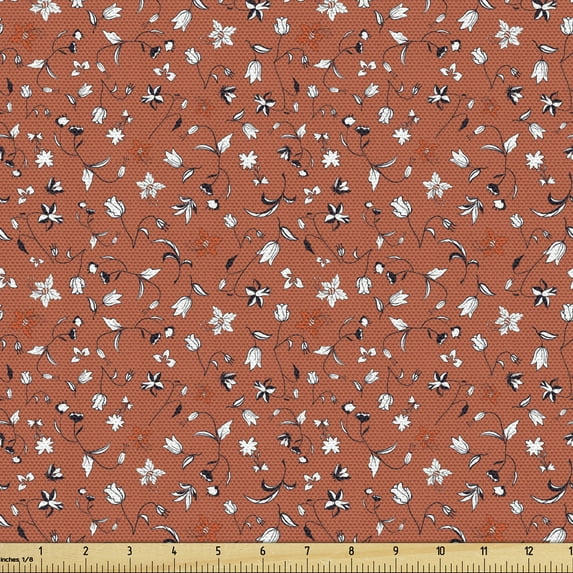 Hero image 0 of Floral Fabric by the Yard Upholstery, Minimal Themed Abstract Various Monochromatic Flowers Composition, Decorative Fabric for DIY and Home Accents, Rust Charcoal Grey and White by Ambesonne, 0 of 5