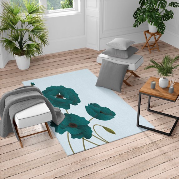 Hero image 0 of Floral Turkish Area Rug, Poppy Flowers Vivid Petals Buds Pastoral Purity Mother Earth Nature Design, Soft Carpet for Living Room Decor with Distressed Look, 4' X 5.7', Teal Khaki, by Ambesonne, 0 of 4