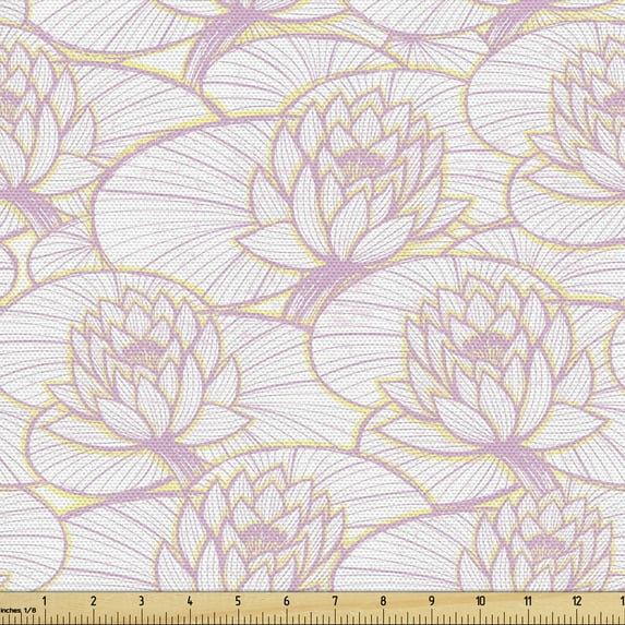 Hero image 0 of Floral Upholstery Fabric by the Yard, Close Up Scene of Digital Striped Water Lilies on a Plain Background, Decorative Fabric for DIY and Home Accents, Lilac and Pale Yellow by Ambesonne, 0 of 5
