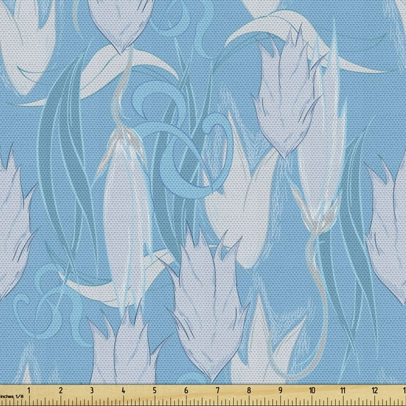Hero image 0 of Floral Upholstery Fabric by the Yard, Flower Petals Hand Drawn Spring Fragrance Bouquets Gardening Pattern, Decorative Fabric for DIY and Home Accents, Deep Sky Blue and Pearl by Ambesonne, 0 of 5