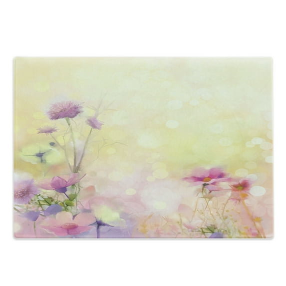 Hero image 0 of Flower Cutting Board, Vintage Soft Colored Feminine Magnolia Blooms Whorls Motif Art Print, Decorative Tempered Glass Cutting and Serving Board, Large Size, Pink Pale Yellow, by Ambesonne, 0 of 1