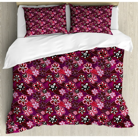 Shipping, arrives in 3+ daysLuau Duvet Cover Set, Hibiscus Petals over Minimalist Style Leaves Botanical Floral Design, Decorative 3 Piece Bedding Set with 2 Pillow Shams, Calking Size, Pink Black and White, by Ambesonne $69.99