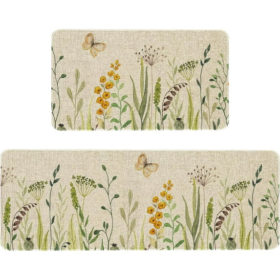 Flower Kitchen Rug Sets 2 Piece Farmhouse Summer Kitchen Mat for Floor Non Slip Washable Thin Kitchen Area Rug Floor Mat Waterproof Hallway Laundry Room Runner Rug