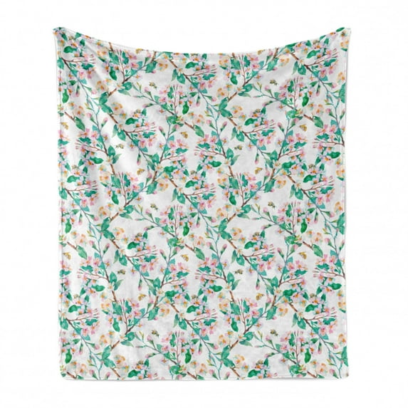 Flower Soft Flannel Fleece Throw Blanket, Pink Cherry Blossoms Pattern with Bumble Bees Japanese Spring Themed Print, Cozy Plush for Indoor and Outdoor Use, 60" x 80", Pink Green, by AmbesonneFlower Soft Flannel Fleece Throw Blanket Pink Cherry Blossoms Pattern Bumble Bees Japanese Spring Themed Print Cozy Plush Indoor Outdoor Use 60 x 80Flower Soft Flannel Fleece Throw Blanket Pink Cherry Blossoms Pattern Bumble Bees Japanese Spring Themed Print Cozy Plush Indoor Outdoor Use 50 x 60Flower Soft Flannel Fleece Throw Blanket Pink Cherry Blossoms Pattern Bumble Bees Japanese Spring Themed Print Cozy Plush Indoor Outdoor Use 50 x 70Flower Soft Flannel Fleece Throw Blanket Pink Cherry Blossoms Pattern Bumble Bees Japanese Spring Themed Print Cozy Plush Indoor Outdoor Use 70 x 90