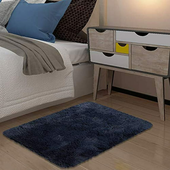 Fluffy Area Rug, Modern Abstract Fluffy Area Rug Indoor Soft Area Rug Faux Area Rug for Bedroom Living Room,Dark Navy,2' x 3'