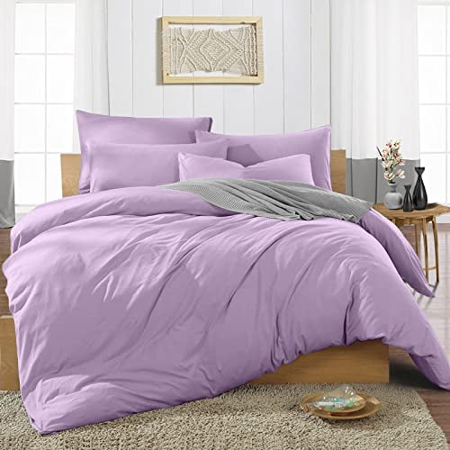 Fluffy Duvet Cover 3 Piece Set, Luxurious Soft & Durable, Zipper Closure and 100% Egyptian Cotton, 400 Thread Count Quilt Comforter Covers - Lavender Solid, Superking Plus Size.