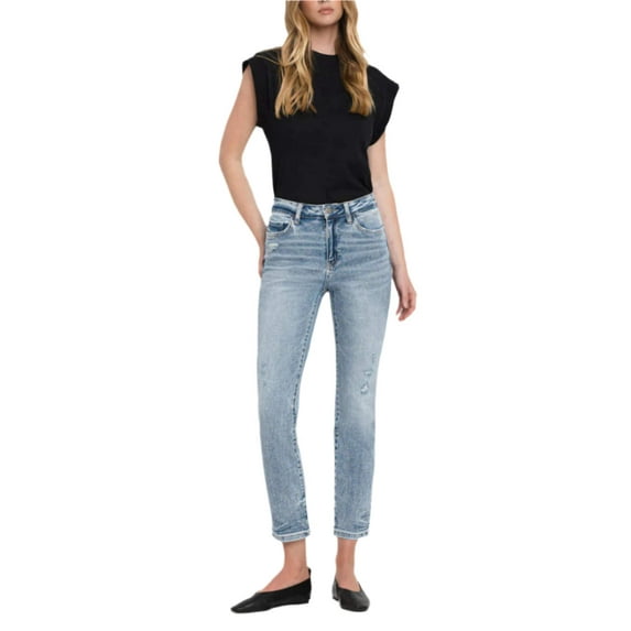 $7795current price $77.95Flying Monkey - Mid Rise Single Cuffed Crop Slim Straight Jean - F4121
