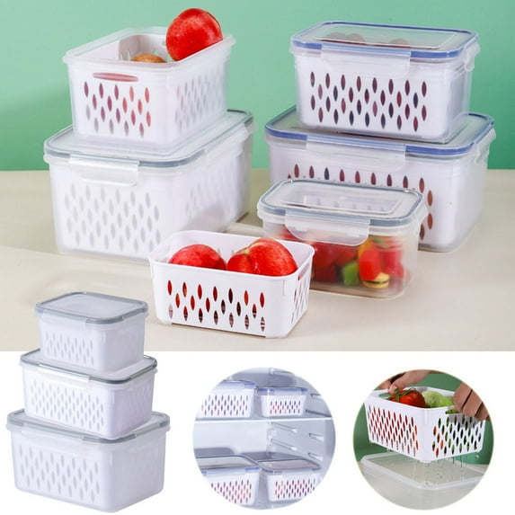 $913current price $9.13+$1.99 shippingFruit Storage Containers for Fridge with Removable Colanders, Airtight Food Storage Container with Lids, Produce Saver, Leakproof Fridge Organizer Bins for Salad Berry Vegetables Keep Fresh