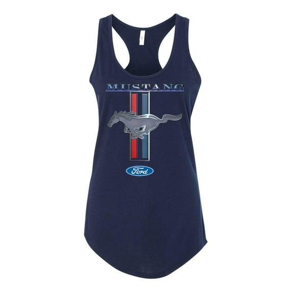 Hero image 0 of Ford Mustang Pony and Stripes Ladies Racerback Tank Top Women Lady Car Auto Automobile Racing-Midnight Navy-large, 0 of 4