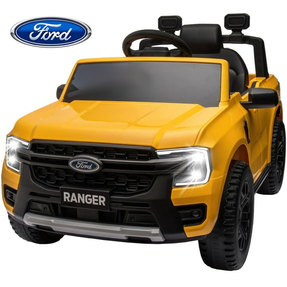 Hero image 0 of Ford Ranger Ride on Truck, 12V Powered Ride on Toy Cars with Remote Control, Bluetooth, MP3 Player, Safety Belt, LED Lights, Horn, Rear Wheels Drive Kids Electric Car for Boys Girls 3-6 Ages, Yellow, 0 of 13