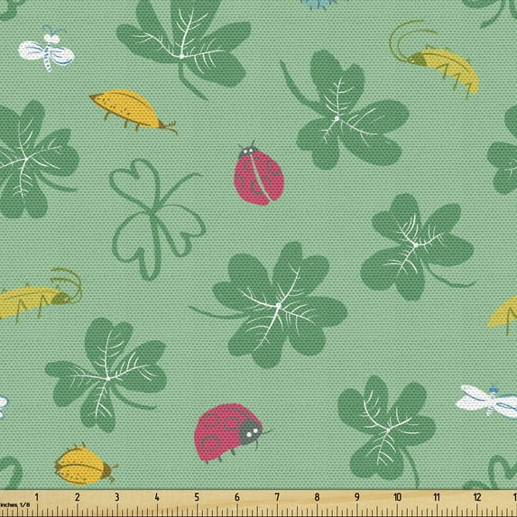 Hero image 0 of Forest Fabric by the Yard Upholstery, Clover Leaves and Ladybug Beetles Dragonfly Happy Day in Nature Luck Theme, Decorative Fabric for DIY and Home Accents, Sea Green Multicolor by Ambesonne, 0 of 5