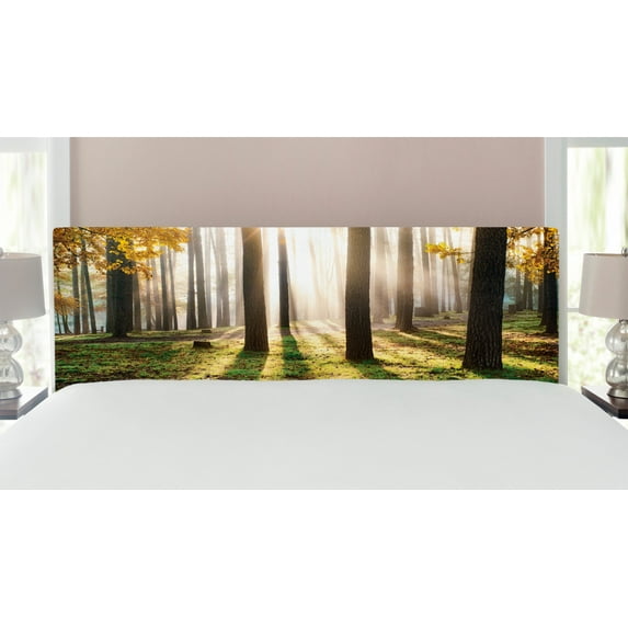 Hero image 0 of Forest Headboard, Landscape Sunrise in the Forest Leaves in Seasonal Woodland Scenery Photo, Upholstered Decorative Metal Bed Headboard with Memory Foam, King Size, Yellow Green Brown, by Ambesonne, 0 of 4