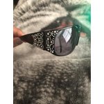 - Fashionable Design: Oversized black shades with a wrap design and wide temples adorned with crystal studs, offering a glamorous and distinctive style.