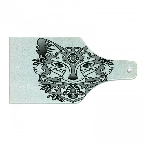 Fox Cutting Board, Ornamental Fox Face with Tree Leaves Oval Shapes Dots Floral Curves Art Print, Tempered Glass Cutting and Serving Board, Wine Bottle Shape, Grey Black White, by AmbesonneFox Cutting Board Ornamental Face Tree Leaves Oval Shapes Dots Floral Curves Art Print Tempered Glass Serving Wine Bottle Shape Grey Black White AmbeFox Cutting Board Ornamental Face Tree Leaves Oval Shapes Dots Floral Curves Art Print Decorative Tempered Glass Serving Large Size Grey Black White Fox Cutting Board Ornamental Face Tree Leaves Oval Shapes Dots Floral Curves Art Print Decorative Tempered Glass Serving Small Size Grey Black White