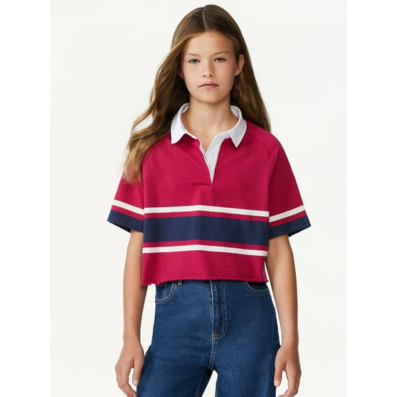 Free Assembly Girls Rugby Stripe Polo Shirt, Sizes 4-18