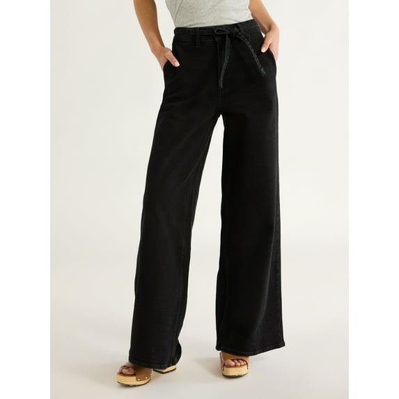 Free Assembly Women’s Belted Wide Leg Trouser Jeans, 31” Inseam, Sizes 0-22