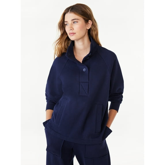 Free Assembly Women's Fleece Popover Sweatshirt with Raglan Sleeves, Size XS-XXXL