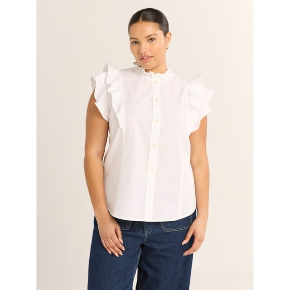 Free Assembly Women's and Women's Plus Size Button Front Ruffle Shirt, Sizes XS-4X