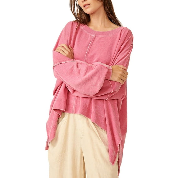 Free People Womens Daisy Split Hem Ribbed Trim Sweatshirt