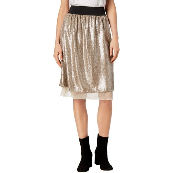 Free People Womens Sequined Midi Skirt taupe S Free People OB676241 Skirt Midi Vietnam Womens Elastic-waist Knee-Length 90% Polyester 10% Nylon Sequins All Seasons Medium Weight Knee-Length Casual Modern