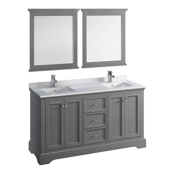 Fresca Windsor 60" Gray Textured Traditional Double Sink Bathroom Vanity with Mirrors