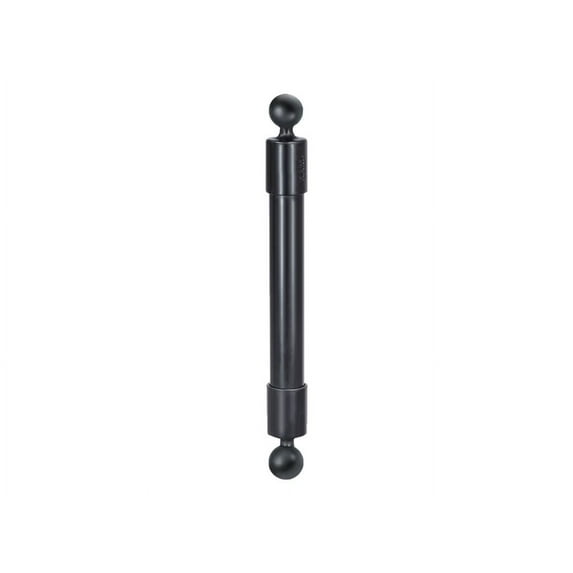 RAP-BB-230-14U RAM Mounts 12.75" Long Extension Pole with 1" Diameter Ball On Each End SPECIAL NOTE - PLEASE READ CAREFULLY: This part may require glueing. Cement/glue is NOT INCLUDED. RAM recommends using PVC cement (not included) for securing this part. If you are not comfortable with supplying and using glue, do not purchase this product. The RAP-BB-230-14U consists of a SHORT extension pole with (2 qty) 1" diameter ball ends. The ball ends are compatible with all 1" ball double socket arms. Dimensions: Pole Length (Ball End to Ball End): 12.75" Features: 1. Extension poles are buoyant, will float if dropped in the water. 2. All components are plastic or stainless steel making this device the perfect solution for many outdoor activities, including saltwater applications. 3. Light weight, easily adjustable and packable. Easily break down your setup to stow when not in use. 4. Modular system allows for infinite configurations. Easily capture self-portrait images from water level, overhead shots and even underwater images of your latest catch. 5. Easily rotate the mounted video device to operate on-board functions, check shot angles and other critical adjustments. 6. Lifetime warranty 7. Made in USA Material: High Strength Composite Ball Size: 1" Rubber Ball "B" Size Note: This part may require glueing. RAM recommends using PVC cement for securing this part. The "U" in the part number reflects product packaged in poly bag. Weight: 0.36 lbs.