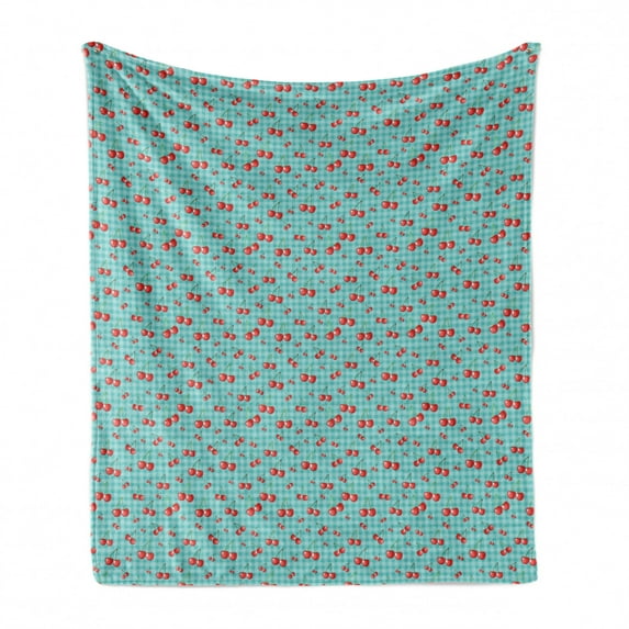 Hero image 0 of Fruit Soft Flannel Fleece Throw Blanket, Pop Cherries Gingham Checkered Background, Cozy Plush for Indoor and Outdoor Use, 50" x 70", Aqua Vermillion, by Ambesonne, 0 of 5